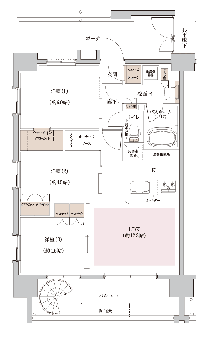 • オーナーズスカイテラス面積/18.68(約5.65坪)