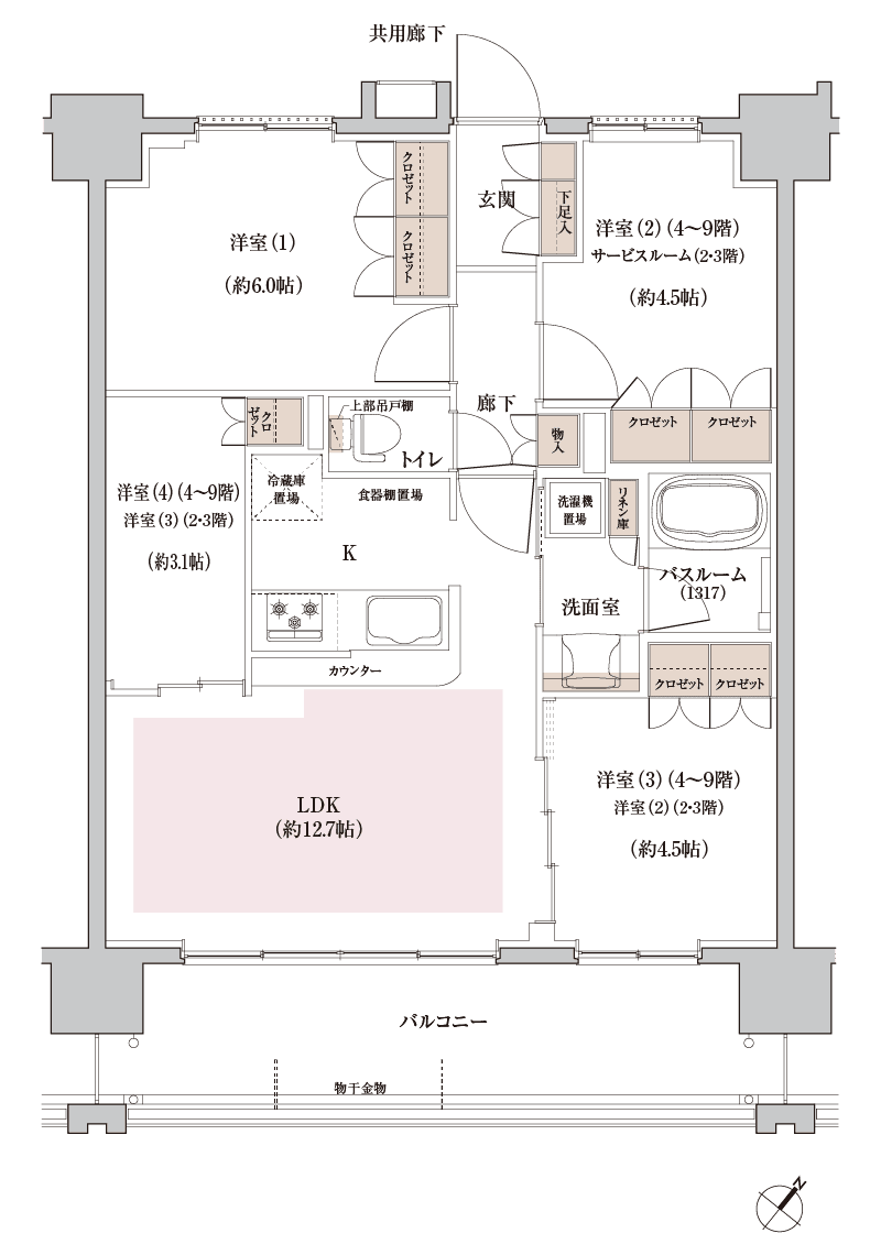 C type 4LDK(4~9階)3LDK+S(2・3階) 専有面積/65.04㎡(約19.67坪)バルコニー面積/12.49㎡(約3.77坪) ※WIC:ウォークインクロゼット、O:オーナーズブース、SC:シューズクローク 一覧に戻る